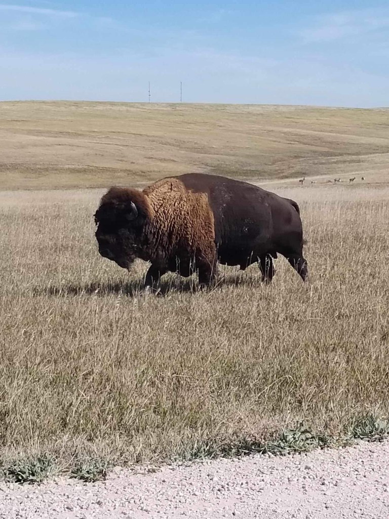 Badlands has been my favorite National Park I have visited so far. Badlands National Park is located in South Dakota, near Wall, SD. The coloration of the mounds and rock formations was beautiful. Badlands is home to many different wildlife including, but not limited to: Bison, Elk, Mule Deer, Black-Footed Ferret, Prairie Dogs, Bighorn Sheep, Pronghorn, Cliff Swallows, Prairie Rattlesnake, Bull Snakes, Painted Turtles, Great Plains Toad, Red Tailed Hawk, Golden Hawk, & Burrowing Owls. I visited Badlands in October and was able to see Bison, Prairie Dogs, Mule Deer, & a Golden Hawk. Robert’s Prairie Dog Town in Badlands is a great place to see Prairie Dogs! As a reminder, it’s important to maintain a safe distance from wildlife. National Park Service requires that you stay at least 100 feet away from wildlife and do not approach the wildlife. See the photos below for the pictures I took of the Bison and Black-tailed Prairie Dogs.